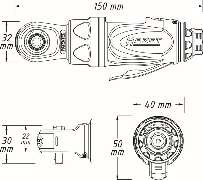 •Luftanschluss Einlass: Innengewinde 12,91 mm (1/4″)