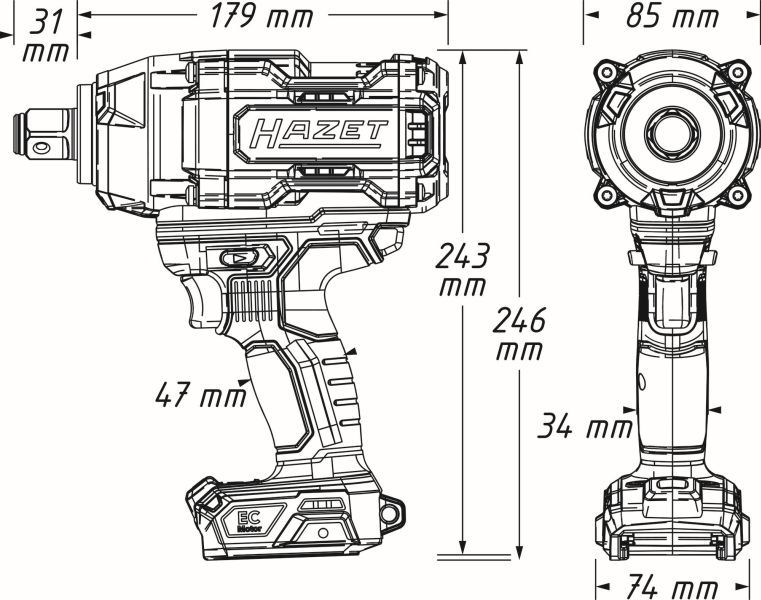 •Abtrieb: 3/4 Zoll (20 mm) Vierkant massiv