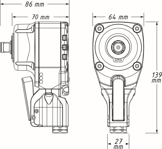 •Abtrieb: 1/2 Zoll (12,5 mm) Vierkant massiv